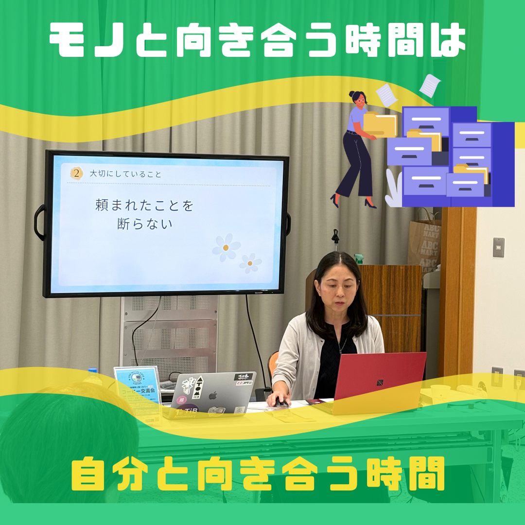 交流会では、ご自身の体験談や片付けを学んだきっかけ、そして整理収納の奥深さをシェアしてくださいました。