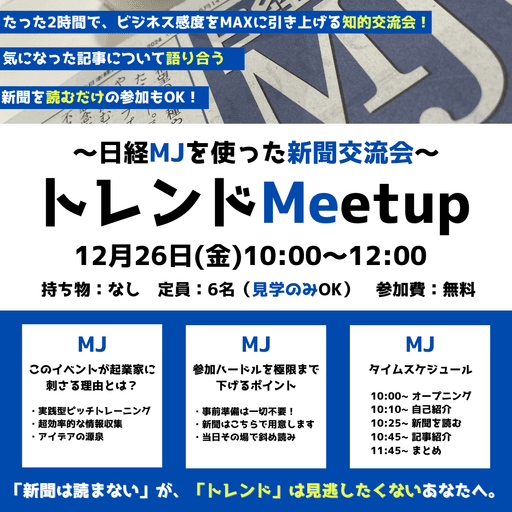 【12/26イベント開催】トレンドMeetup 〜日経MJを使った新聞交流会〜