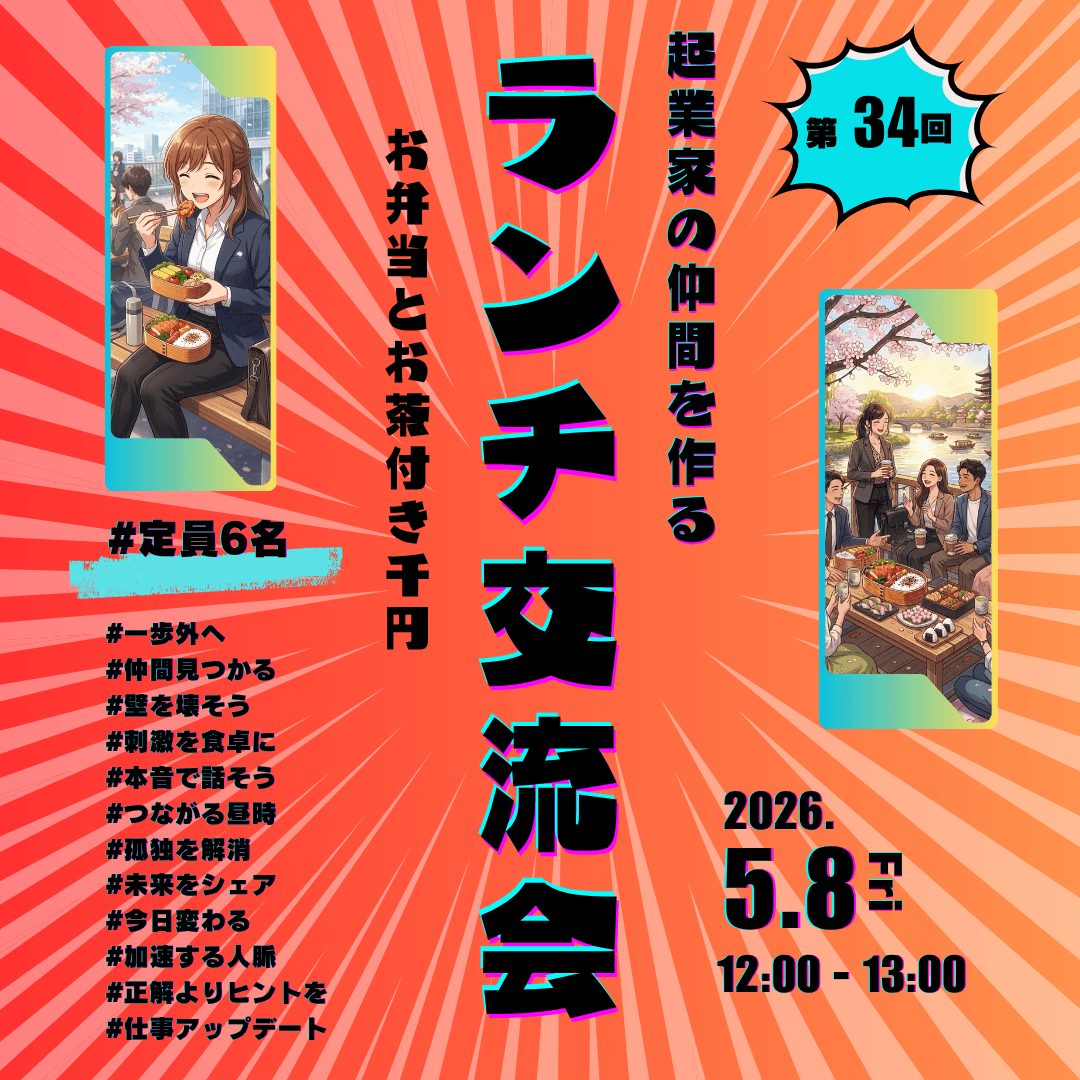 🌿 【参加者募集】 5/8(金) 第34回 起業家の仲間を作る「ランチ交流会」のお知らせ ✨