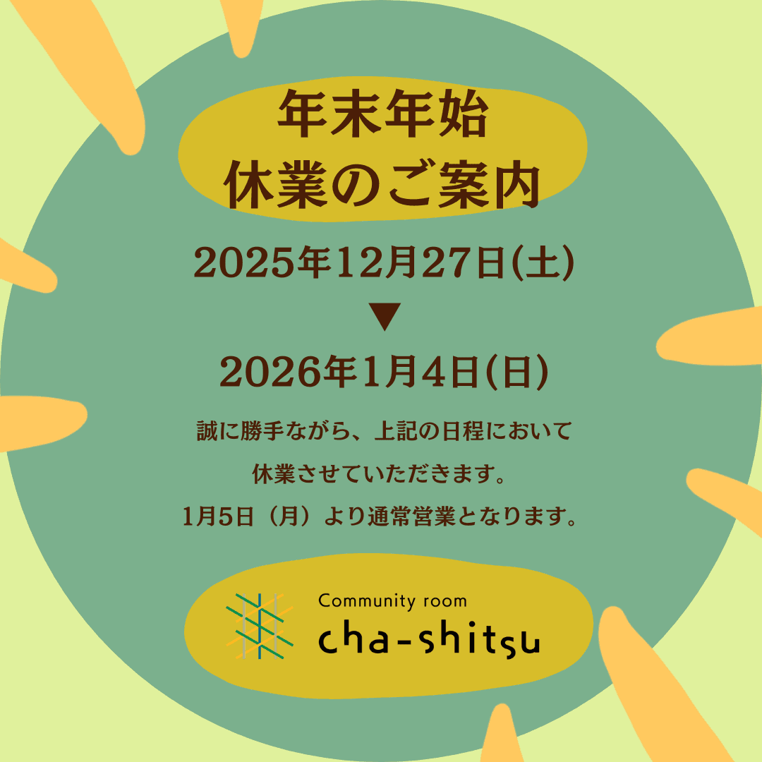 仕事納め前の作業や、年内最後の情報交換に、ぜひ cha-shitsu をご活用ください。