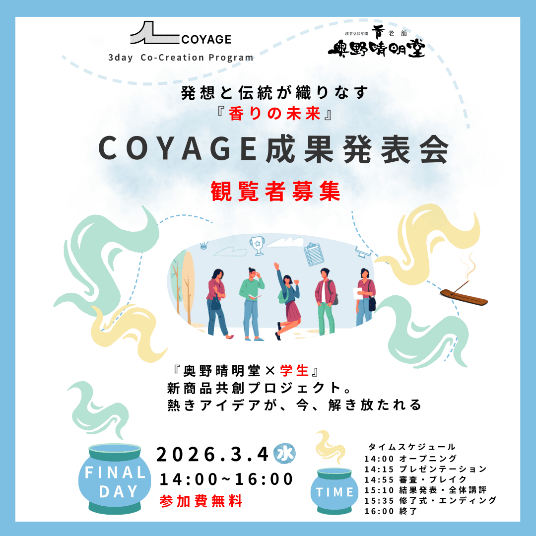 【観覧者募集】奥野晴明堂×学生 新商品共創プロジェクト「COYAGE」成果発表会