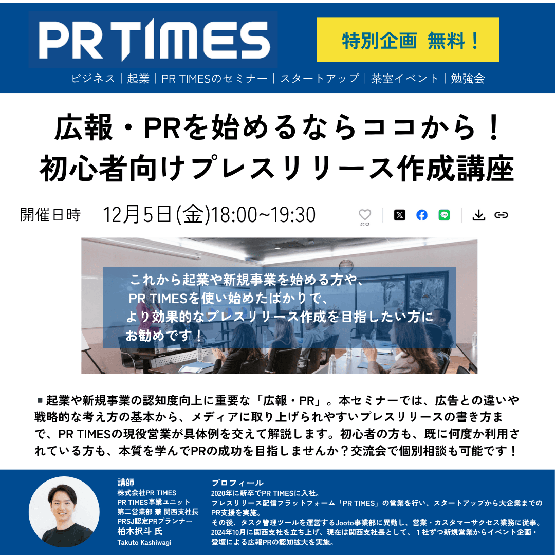 【12/5イベント開催】 〜広報・PRを始めるならココから!〜 初心者向けプレスリリース作成講座